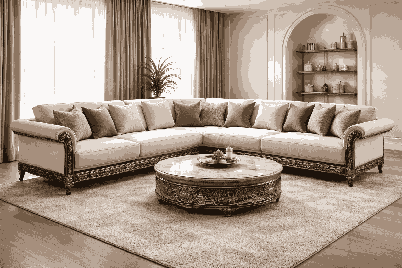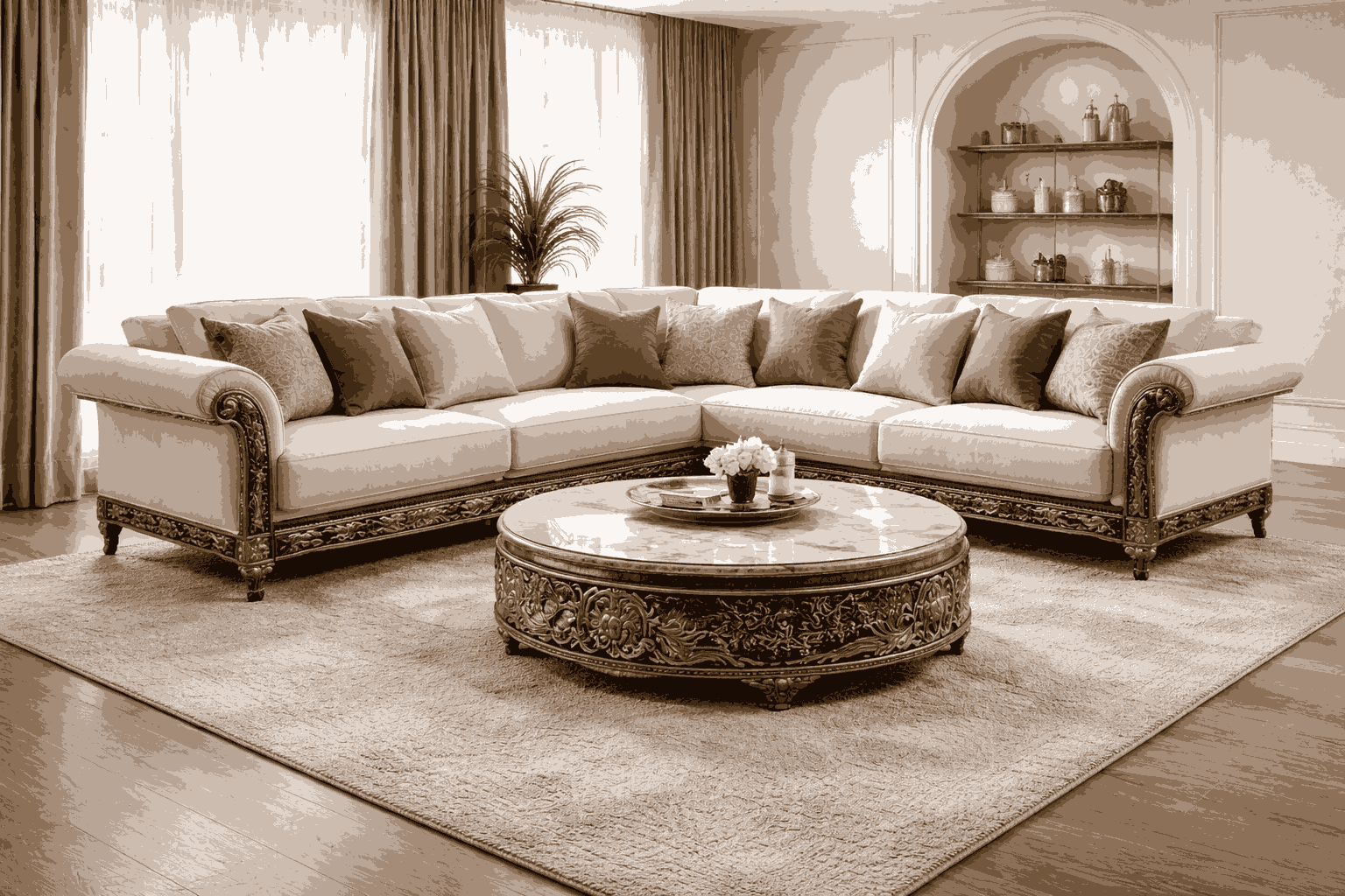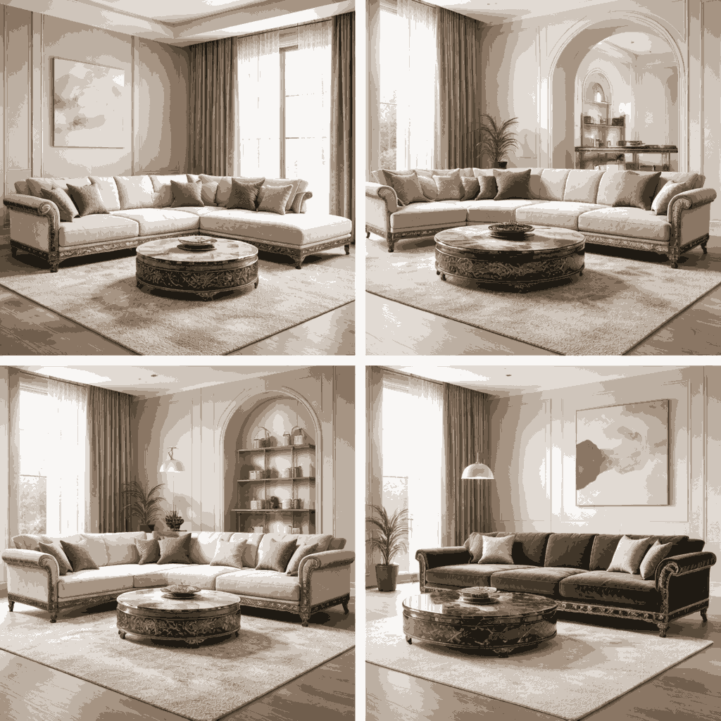 This luxury corner sofa set is built with a strong wooden frame and high-quality upholstery to ensure durability and long-term use. The spacious seating arrangement makes it ideal as a modern sofa set for living room areas, especially for families and guests.