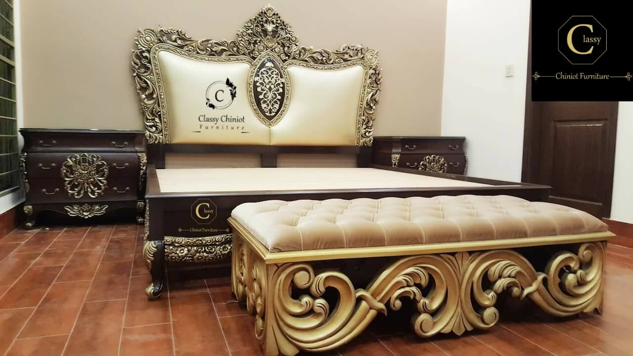 With superior craftsmanship and long-lasting materials, this bedroom set is a signature offering from Classy Chiniot Furniture, ideal for those seeking elegant, durable, and royal bedroom furniture in Pakistan.