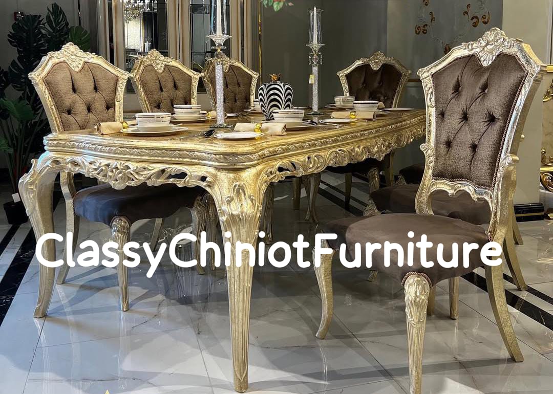 The Stylish Dining Set for Pakistani Homes blends contemporary design with traditional craftsmanship. Its sleek wooden frame and polished finish make it an ideal addition for modern and classic dining spaces, offering a luxurious yet functional setup.
